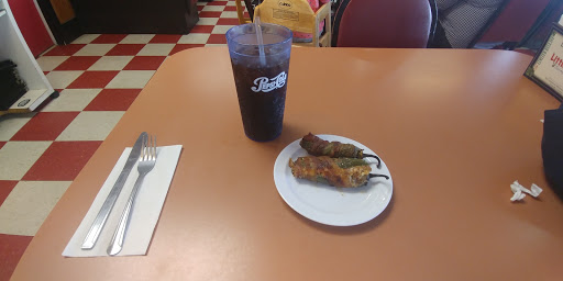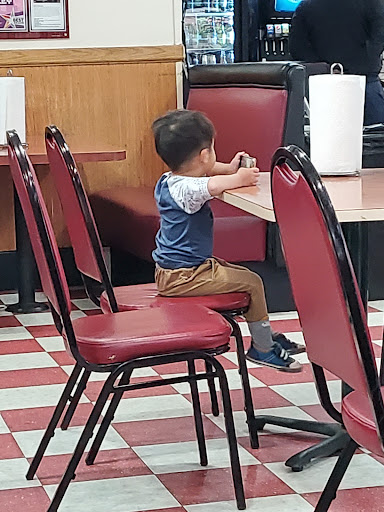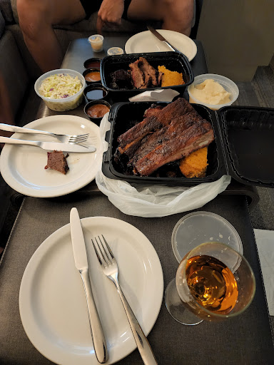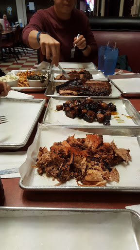 Found this place simply by searching Google Maps for nearby restaurants. It was about a mile from my hotel and BBQ sounded good so off I went. I got there around 5 or 6 and it was about 3/4 full. Im not familiar with San Jose so I dont know if this is true, but it doesnt appear to be in the best of areas. My hotel surroundings backed this theory up though... Anyway, I walked in and heard a female voice ask if it was just 1 in my party. Considering there were about 6 waitresses in the tiny area, I just looked in the general direction and said yes. The tall one came out of the group holding a menu and sat me at the booth just right of the door. It took about 10 minutes before a different girl showed up and took my drink order. I was a little annoyed by this considering they werent super busy yet. Especially having that many servers on the floor...She returned promptly with my soda and took my order. She was friendly and offered suggestions since this was my first visit. Nah, Ill try the ribs/brisket combo with mashed potatoes, mac n cheese, and cornbread. A different woman brought the food in about 10 min. Then an older guy walks by and gives me a refill. Not 3 minutes passes and yet another woman (thin Asian) stops and asks me how Im doing. Once Im finished, my original server (believe her name was Joanna) asks me about dessert. I had read excellent reviews about their peanut butter pie so thats what I got. Well now hows about I do an actual review!? The ribs were a little tougher than Id like but had a good flavor. Not much meat to them though. Also, they were lukewarm at best - just like the brisket. The brisket was somewhat bland, but after adding the BBQ sauce found on the table, problem solved. The potatoes and mac n cheese were both hot (not too difficult though, considering theyre scooped out of a heating pan) and delicious. And its a shame the dude in a previous post didnt get his cornbread because its actually really good too. Then lastly, you must try the peanut butter pie at least once. Its creamy and smooth, and sits on an Oreo crust. As far as the restaurant itself goes, its not very spacious so I can see seating being a problem during dinner time. The parking lot is not big-car friendly either. The parking spaces seem narrower than normal and its one-way in and one-way out, and its quite a tight turn to get around in there. Overall I say its worth a visit or two. It has that old diner type feel to it; with some booths around the wall and a bunch of metal tables crammed together in the middle.