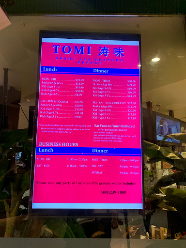 My never ending desires for sushi is a flame that will never burn out. So when I heard of AYCE+ Sushi I knew I didnt have to call Ms. Cleo to tell me where I was headed in my near future. When you hear the words sushi and all you can eat buffet in the same sentence your stomach tends to cringe at the thought of the quality of the food. I do admit I was skeptical especially when it comes to seafood and astonishing as this sounds the food was pretty decent. Tomi is probably the best choice for buffets out there. Not sure what to expect I envisioned a couple of trays with some sushi rolls over a heated lamp but boy was I wrong. I have to give them props for the variety of assorted Asian foods. Roasted Duck, dumplings sushi, egg custards, XLB, green tea ice cream and so much more. My first stop was straight to the sashimi section. I thought they had well cut slices for your choosing. I also saw cooked dungeness crab, lobster and crab legs. The meat wasnt very fresh but that was expected. They had a limited dessert section but their green tea ice cream came in for the win. Expect a wait especially if you are coming for dinner. They told me to make a reservation next time to avoid the lines.