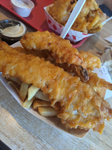 Really great fish and chips place. Small but clean. Portions are big and the prices arent bad at all. The food is good. I like their deep fried prawns, veggies and fish. Havent tried the oysters or catfish. Service is fast and the food made when you order. Would definitely recommend it and will be going back.