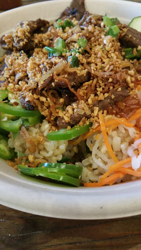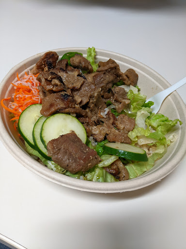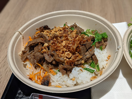 Overall, this place is pretty good. I was expecting broken rice (com tấm) for my order, but it was cool. Imagine Chipotle for Vietnamese food. Proteins were delicious -- Ive tried the grilled pork and chicken.