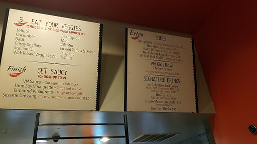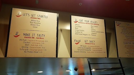 When describing what kind of food this place had, my friend said it was like Asian Chipotle. I see her point, but to me its more like an upgraded version of Flame Broiler (if youre from SoCal, you know what Im talking about). Either way, the common denominator is that if you want to be healthy, this is definitely a good idea. I think how the menu is laid out has been covered already. But for me, brown rice, pork, cucumbers, lettuce, bean sprouts, and VN sauce. Just enough food to fill me up, but I felt pretty healthy after eating it. Although I wasnt really expecting to come here, I would definitely come back here again. Hard to find healthy options that arent bland.