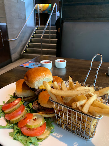 This place is perfect if you love sports and beer. I ordered the BBQ Bacon Burger and the salted caramel butterscotch. The BBQ Bacon burger seemed a little small and didnt come with any veggies. The bbq sauce is on the side so you have to pour the sauce on with every bite. It comes with a side of regular fries that were really thin and I loved them. The salted caramel butterscotch was way too sweet although it tasted good the first few bites in! It was recommended by our waiter, but it may be a good dessert to be split among 4 so you dont have to eat too much of it.