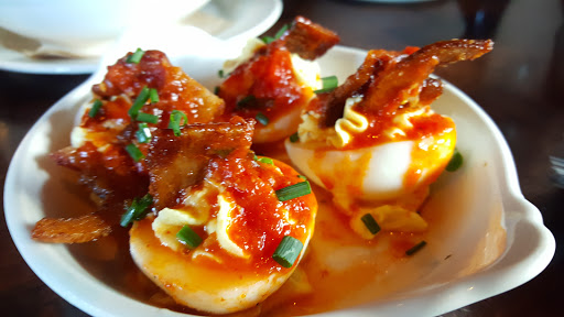 We had a good time here. It was a little loud for us, but it was a pretty hoping place for young 20-40s to hang out. Its a modern sports bar/brewery. Its very fun and energetic. Its the place to hang out for an hour after work but not the place for the family. The food portions were huge. We got the sliders and the California roll as an appetizer and those ended up being our meals cause they were so big. The roll was as big as our plate. We also got the eggs and the flat bread snacks and those were really good too. The martinis and cosmos were pretty awesome. Fun place to hang out with a few friends, just talk loudly.