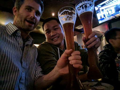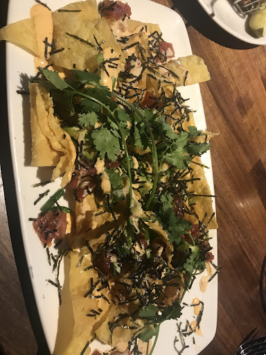 This is a busy brew pub. Nice place for beers and fun American fusion food. Had poke nachos last time we were here because the name was so intriguing! They were pretty good! No nacho cheese sauce haha, but they were on wonton crisps with avocado, green onions, ahi tuna, seaweed strips and a spicy sauce. I also got the crispy ahi salad, small size It was delicious as well. They were playing the Olympics, and it was overall a fun experience.