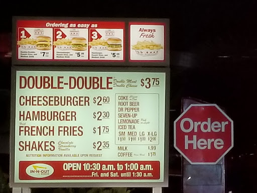 I love In-N-Out. Im predisposed to give In-N-Out 5-stars no matter what. The food is the same everywhere so my 3-Star rating here is entirely about what happens when this place gets crowded (which is often given the soccer tournaments nearby). When its crowded, the parking lot fills up and traffic backs up on the turn into the lot. Since theres barely enough indoor space to order food, people crowd up around the door and fight over reserving limited seating outside. The drive-thru is really the ONLY option if this place is packed.