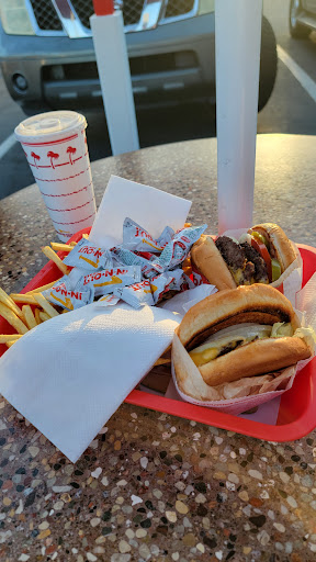 This In-Out was poorly designed. There was a drivethru which we had to cross in order to place an order if we wanted to eat there. Which outdoors was the only option. Also when my family of 4 children had to use the restroom we again had to cross directly in front of the drivethru traffic. Someone can Easily be hit by a car. Only thing i can think of that would make sense is if this location used to be drivethru only. HOWEVER, as expected, the food was DELICIOUS!!!!