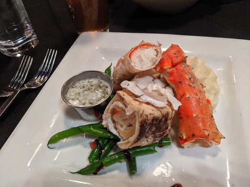 Very nice elegant atmosphere with great staff and service. Filet mignon and bacon wrapped jumbo shrimp with some kind of stuffing are amazing! Couldnt get enough of the shrimp! Great selection of wines too!