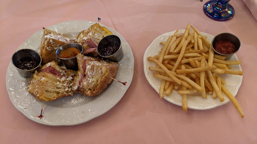 This place is hard to accurately describe... The opulence of Graceland coupled with the decor of a Brothel is probably as good a description as any. In a word, tacky. Actually in two words, VERY tacky but I digress. After your eyes adjust to the dim lighting, they are unapologetically assaulted by the color pink. As bad as all that was, the food and service made it worth every minute. There were 15 of us that came on Mothers Day. The place was a zoo but they treated us super! They had our table set up in no time and our waiter was right there taking drink and appetizer orders with a jovial spirit and a big smile. When we got our food orders everyone dug in and enjoyed their choices. I dont remember what everyone had but as usual I of course had the Reuben. It was just right. Tender meat, not too saucy, just enough sauerkraut and bread that wasnt too soggy or hard. I couldnt finish it and I think everyone took something back to the hotel with them. All-in-all this was a good place to eat, dont be in a hurry, wear some sunglasses and for goodness sake, try the Reuben ;)