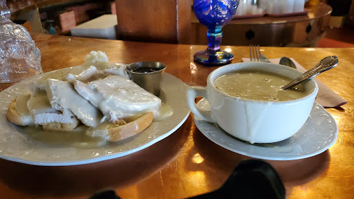 Copper Cafe has so much to offer. I love there hot turkey sandwich served open face with mash potatoes and smothered in homemade gravy. But save room because they are famous for dessert. Pink Champagne Cake, Black Forest Cake, Lemon Coconut and many others you wont be disappointed Madonna Inn Copper Cafe delivers every time.