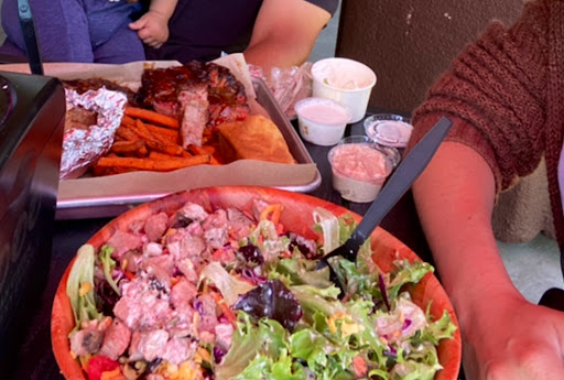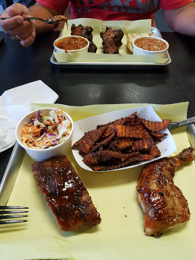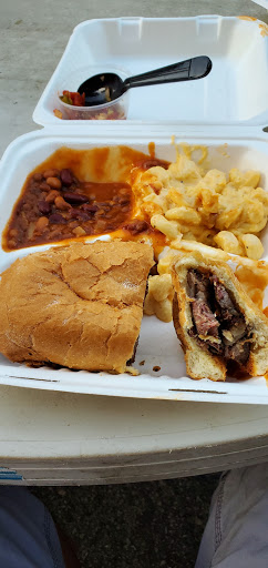 Rib Line is delicious. Im a beef rib fan. The tri-tip sandwich is fantastic, and though I dont usually need a lot of sauce I did think it needed a little extra bbq sauce, and theirs is great. If you can eat three pounds of it on a full loaf of local garlic sourdough bread (which is awesome) faster than the current champ, youll get a free lunch special every friday which would be amazing. Potato salad is really good; the honey butter with the corn bread is amazing.