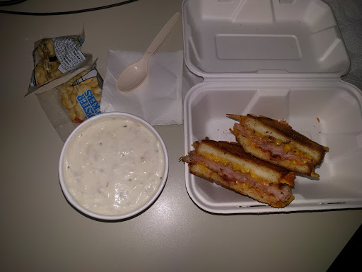 Wife loved her clam chowder bowl. I enjoyed some pulled pork. Fast and friendly service with good food. Cant beat that.