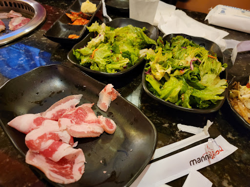 The less busy Manna of the 3 Ive been to. Cant beat the 20 dollar all you can eat! Dont waste your money on the seafood or more expensive kobe beef options. Remember the 2 hour time limit starts when your party sits down so make sure youre all there before youre seated.