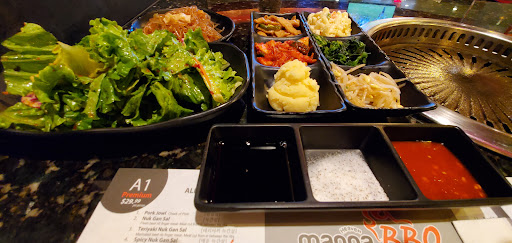 Manna BBQ is one of my go to restaurants. If I love you than you probably have been to Manna too. :) The food is always delicious and no one ever leaves hungry. I am a fan of A2 menu. I dont believe it is on the menu, but I like to order a side of onions and garlic. So good!