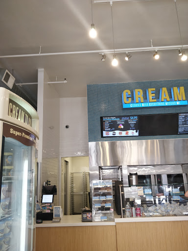 You know that irresistible aroma of fresh-baked cookies that flows in the air and wafts past your nose making you stop in your step and wonder, "where is that delicious scent coming from?" Yea, thats how Cream entices you into their store. I was able to resist the first time I came to the area, just buying Gong Cha and leaving. But when I came with my family, my sister was unable to resist the tempting aroma of cookies and made it her mission to get an ice cream sandwich cookie before we headed back to LA. And I followed her inside since the smell of cookies was just too amazing. So Cream has a wide assortment of freshly baked cookies as well as a good number of ice cream flavors and toppings to do any sort of combination/creation that your heart desires. You can get cookies by itself, ice cream by itself, make an ice cream cookie sandwich, add toppings, make a premium ice cream cookie sandwich, make sundaes, make a taco (3 ice cream flavors and 2 toppings), purchase brownies, buy milkshakes, or get a coffee drink. Yep, the menu is pretty extensive. So if you want to make some sort of ice cream cookie concoction, chances are the workers at Cream will help you out. I tried the butter sugar cookie on its own while my sister got a snickerdoodle salted caramel ice cream sandwich. The cookies individually werent too expensive - like around a dollar or so for each, and they were taken right out of the oven! The butter sugar cookie was a bit of a let down in that it was way too sweet. I couldnt finish the entire cookie because the flavor was a bit too cloying. It reminded me a lot of the sugar cookies from Ralphs, which .. meh, are decent but not the best. The moment I heard my sister order the ice cream sandwich, I knew she wouldnt finish it. And I was right! The combination was way too sweet. The snickerdoodle cookies were amazing. Still warm from the oven, it tasted like cinnamon and sugar - bliss! The salted caramel ice cream was also good - by itself. Its definitely nowhere near as good as Bi-Rites. Mixed with the cookie and it was really sweet. And I like sweet things, but this was too much. We couldnt finish the cookie sandwich and had to toss some of it in the trash, which was really sad. However, price for this wasnt too bad - around $3-$4 and I think there was a check in offer. tl;dr - Workers are fairly nice. This shop is definitely a good place to go if youre in the mood for a quick dessert or treat. Everything is clean, there are plenty of tables, the storefront is amazing, and the smell of cookies will draw you in! I would recommend trying the flavors of ice cream first before combining it with a cookie because these concoctions can get super sweet! I would just order cookies and ice cream separately, but thats just me. Glad I got to try Cream and its good to know that there are locations in SoCal that I can easily visit. I rarely get a craving for ice cream, so if anything I will be back for the cookies!