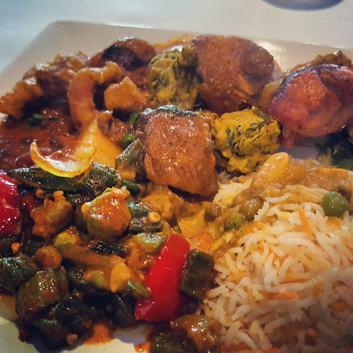 Ordered delivery though here; the curries and naan/rice were all delicious and still hot when they arrived but the delivery took longer than most places and was a bit on the steep side as far as price.