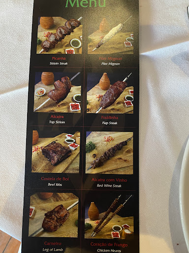 Meat on a stick!! This was my first time to a Brazilian Churrascaria and it was an experience I really enjoyed, My favorites were the red wine steak and the pork sausage. Although I found the meats to not have allot of seasoning it wasnt something a little salt couldnt fix. I started off at the salad bar and there was a variety of Brazilian sides and salads as well as a hot appetizer section. The hot app choices were: white rice, black beans, a lasagna roll thing and a sort of Brazilian shepherds pie thing. Over all I would have liked to see a little more choices that would pair well with the meats. We were served Chicken and Pork Sausage for the first go around. next came the first verity of Sirloin, The meat was well cooked (Medium Rare) and juicy. After that came the Tri-tip which was equally juicy and well cooked. In fact all the meats were cooked perfectly. The Red Wine steak was the only one that was marinated and was my favorite of all. I was also served chicken drumsticks that were cooked on a skewer with the thinner part removed, so It was just the meaty part of the drum stick. They also brought out a round of chicken hearts which I passed on. I went at lunch time and it was not very busy at all. It was a fun experience but its not a place I feel I could take my wife to. She doesnt eat allot of meat and at $50.00 for dinner probably wouldnt be worth it. maybe for a lunch a t $30 each.....