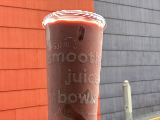 Smallish Jamba Juice thats noisy. Service is ok. Most of the staff is inexperienced or apathethetic at best. Cant expect much from mostly kids. The prices have gone up but the menu on the wall hasnt been updated. For 1 small smoothie and two medium juices itll run you $19. $19!!! There is nowhere to sit while waiting for your drink. When they get busy its very hit or miss what you get. Smoothies tend to be watery and the juices are not cold. Facility can be a lot cleaner. The backside of the shop is especially sketchy.