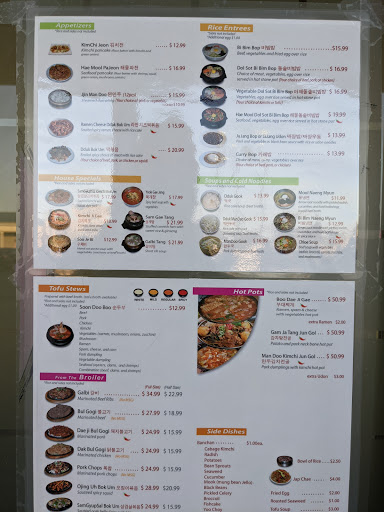 On a cold day, this is the place to order spicy Tofu Pork Stew or Bibimbap in the hot stone bowl in the San Mateo - Foster City area.The ladies here are friendly and will try to accommodate as much as possible. The ladies here will crack the egg for you if you order the stone bowl version. They will also continually fill up the banchans (aka side dishes) if you ask. If you get there early for dinner, be sure to order the "purple" color rice instead of the white. They do run out towards the end of the night. Its very busy during the weekends for dinner. The wait can be long because this place is really popular with families and they do not take reservations.