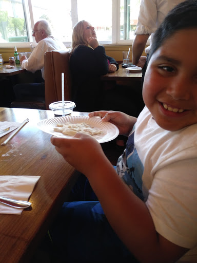 Great pizza, good service. Its tough to get seating for anything other than 2 or 4 people... there are only two corner booths where more can sit. My 4-year-old loves eating here because they give kids a little bit of half-cooked pizza dough to play with, which is really nice. Really great pizzas across the board; you cant go wrong with any of them. If youre looking for a great pizza spot in downtown San Mateo, youll be well-served here.