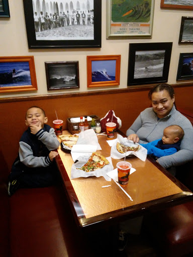 Handy generally quiet place for a couple of slices and a beer or two. Beers are cheap (by Bay Area standards) - $4 for Lagunitas IPA/Sierra Nevada Pale Ale. Slices are fine too - you can have 2 slices and a soda for ~$10. Staffed by Polynesians (Tongans?) and a rotating cast of others; the staff is invariably friendly. Although theres probably not much difference in reality, I greatly prefer this location to Palo Alto. The pizza is good, nothing to brag about, but if youre looking for a laid back place to have a couple of slices and take your time doing it, this is an excellent option. Thumbs up!
