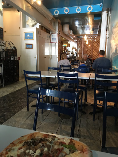 After we reading the good reviews, a group of us decided to try it on the way home from Santa Cruz. The place is fine enough, kitschy decorations etx but good for a Greek pizza place. The menu was very large (both with items and physically- it must weight 10 pounds!). However I must be honest when I say our server was perhaps one of the worst Ive ever had in my life. Upon leaving, I actually apologized to my colleagues for recommending this place from yelp. Im not sure what the problem with our waiter was, but from the minute we arrived he had a seriously bad attitude. We were all very polite, asked a couple of short questions about the menu. We ordered a pitcher of beer, and one friends had to run to the car to get her ID (we are all in mid 30s, but no problem. When she returned with her ID, the waiter met her at the door and very condescendingly told her "Ill check it at the door". When she took a second to fish it out of her purse, he actually said "are you kidding me?!?" Ass. Basically his attitude when downhill from there. When we tried to order another round of drinks, he intentionally brought us the wrong things. He came by to pick up the check with her credit card, then returned a minute later and asked us and all seriousness if anyone had been by to get the check yet. This leads me to believe that either he was incredibly stoned or very incompetent. I really want to like this pizza place because its a sweet looking family owned restaurant. It actually says on the menu their purpose is for customer satisfaction, and not for satisfaction of the employees. It seems sad to me that they would employ someone so ridiculous. We actually were wondering if we were on hidden camera. I suppose I would recommend going here if you want to truly incompetent experience. Despite the terrible service we still tipped over 20% on the total bill. The waiter absolutely didnt deserve it, but I hope you sure the tip with the busboy and the other waiters were helpful.