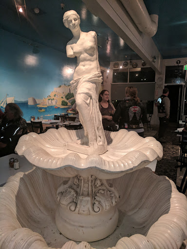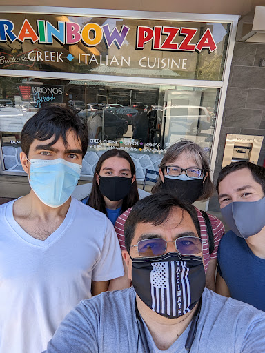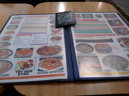 Mix Greek and Italian and Rainbow Pizza comes to mind. Both are fantastic. This place is not cheap, but what you are paying for is quality and quantity. The portions are huge. If you like thin crust but with an outer thick crust edge, this is the place. Lunch is not as crowded as dinner (and they do not take reservations), but even with a 30 min wait, this place is still so worth it. If you dont want to dine-in, Rainbow does deliver. The most popular is the #2 Greek - American pizza. Rainbow piles on the toppings - salami, pepperoni, onions, green bell peppers, mushrooms, tomatoes, feta cheese, Italian sausage - which makes it heavy and you have to use a fork and knife to eat a slice. We also like the half Greek salad and the 3 meatball spaghetti (which comes with a pile of toasted garlic bread). My personal favorite is the 3 meatball sandwich, lathered in marinara sauce and parmesan cheese that I sometimes order for lunch. The meatballs are huge, moist and very flavorful. You can never finish your meal here so youll have delicious leftovers the next day. Be sure to visit Rainbows website for "Rainbow Pizza coupons" to help put a dent on your bill. Plenty of parking in the Crystal Springs Shopping Center.