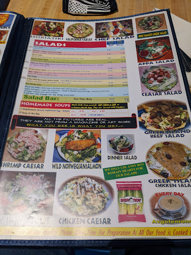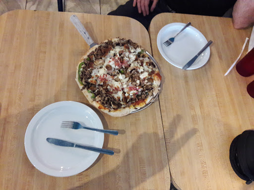 Meh! It was OK. The Greek dinner salad had some lettuce with vinegar, the pasta was huge, but over cooked and a bit mushy, the sauce was OK. The atmosphere, crappy, and way too noisy to have a conversation. I didnt try the pizza, the ones that I saw on the tables were all swimming in pools of liquid, probably due to the amount of toppings that they put on them. Ill go back and try the gyros, they looked pretty good. Dont get the iced tea, its dispensed and is already flavored with lemon.