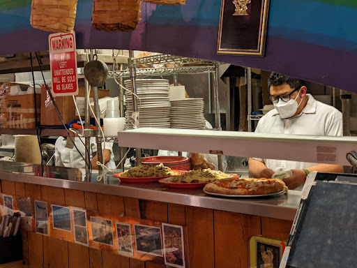 Crazy giant menu with ridiculous amount of choices! Pizzas are heavy! You have to watch them make one from the front window. They pile on the toppings like little mountains. Ive been coming here for decades, when I worked very close by. Family run business at their best. Still go as often as I can, though I cant eat as much as before. Just means I get to enjoy the leftoverso. Portions are very generous and the server great no matter how crazy busy it gets.