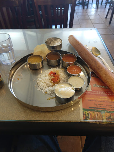 The Good: I have gone here a few times with co-workers, both when it was Dosa Republic and now the new name Chennai Club. Most of these times I was treated to my meal so didnt notice the price. The people at the counter are helpful and try to help. The Bad: For the $19 I spent at this place I could have got a full buffet of yummy Indian food. Its weird their once informative website now points to Yelp. Huh?! The rice was steamed or brown. Seriously? This is not Indian food. The Dosas are like crepes made into a pocket, fun at first, confusing to eat. WTF style is Chinese Indian fusion? My palate may be different, but this food is very hot and spicy to hide how absolutely bland it would otherwise be. Most of it tastes like burnt chow fun dipped in a Moo shu or sweet hoisin sauce. It doesnt have the delicious curry or chutney tastes youd expect from Indian food. Its like bad Cantonese trying to be something else. Freshness: This didnt taste fresh, it tasted like it had been prepared well in advance and sat around in a freezer all day before it was reheated for my lunch. Coffee: The Madras coffee was nowhere near what a Madras coffee should taste like, this was some cheap instant coffee knock-off, even supermarket chai tastes better. Portions: What I ended up for $11 was a cat-food dish sized sample which was supposed to be the elaborate lamb entree I ordered. This thing resembled cubed meat (pork, maybe) with a sweet sauce that was extremely spicy. It had no taste of lamb at all. Being a new item on the menu, maybe they are experimenting. It kinda failed. Most everyone elses Dosa order (which was cheaper than mine) were double the size portions that I had in front of me. Naan: I had to order Naan separately, because it didnt come with my plate? Thats kinda lame. It was one slice (or half a slice, maybe, it was smaller than normal) of Naan that cost an extra $3. Grrr. When it arrived it looked weird, like a whitish-yellow pita, something not quite right here. Rice: The rice was white and steamed. The other option was brown steam rice. There wasnt any of the usual Indian style saffron rice. Drinks: The coffee and chai drinks taste like they were made from powdered mix (not fresh). The water was right from the tap and tasted chlorinated, served in a mason jar. Seating: When we all sat down together in a nice comfortable table (there were 5 of us) they insisted we move to one of the rustic picnic table setups. This was bad because 1 person in my party exclaimed they needed a chair with back support, and another person is a bit mobility challenged so had a heck of a time getting into and out of said picnic table bench, that was not cool of them at all. They did manage to bring a chair over for one of my friends. It would have been nicer if they let us stay where we were. The noise level was bad, mostly due to the layout of the place and the decor. Some curtains or sound deadening in the ceiling or walls would do wonders. Staff: The wait staff didnt know what food went to whom. I asked to have my coffee brought out when the food was ready. However, they didnt. When I asked to have my coffee brought out, they gave it to someone else. Mine finally came about the end of the meal, and was in a metal cup and too hot to drink. It tasted like metal of course, I wondered if the cup leeched into the coffee or if it was really just that bad. I wont go out of my way to visit this out-of-the-way place anytime again soon. Theres an adult bookstore next door called Secrets. Maybe Ill be back for that.