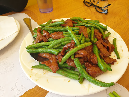 Best string beans with chicken. While most restaurants use tasty but chewy, fatty thigh meat, this kitchen stir fries thinly sliced marinated breast meat for great flavor. Very generous portions. Dont order the Cantonese noodles. Mandarin is the specialty here.