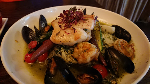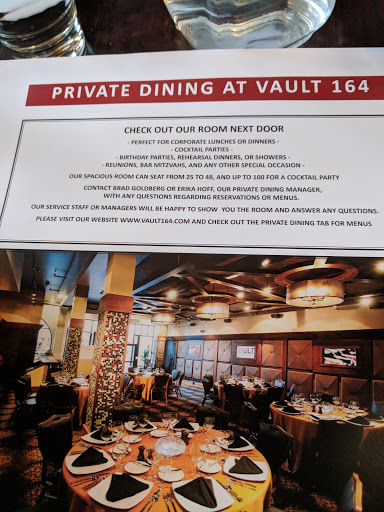 Food is always good at Vault--its one of my favorites. Hearty but simple American food menu. Love the wood, brass, and velvet touches that gives the restaurant, which was converted from a historic bank, a rich atmosphere. Small bar area and they have a great private dining area for groups as well. Garage within 1 block, but parking in the evening in busy downtown SM can still be tough because there are tons of restaurants nearby and its across the street from the movie theater.