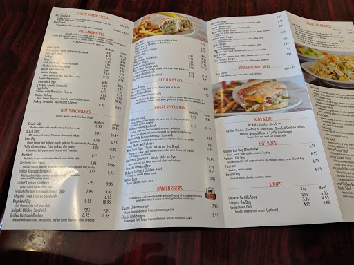 Wide selection of food. Breakfast, Lunch, great desserts. OMG, the Chinese Chicken Salad. .... best in town. Worth the drive for that alone. Sandwichs always fresh. Burger, like I just BBQ. Myself - not your typical burger. Highly recommended. Clearly a local favorite - everyone is friendly. Like Cheers, but without the beer.
