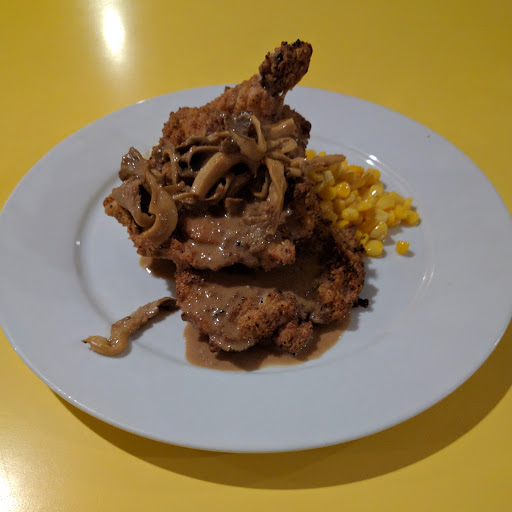 Great food and super fast service. Ill happily return thy next time Im in the area. The Southern Fried Chicken Salad was crisp and tasty.
