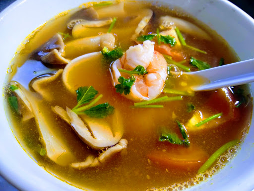 i was in a hurry, and only had time for some tom kha gai soup and a side of rice. i mentioned that to the server, who thoughtfully brought my check just before i finished. the soup was excellent - clean, fresh flavors. i plan to return. not cheap (soup + rice was $11.45 w/ tax) but good.