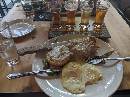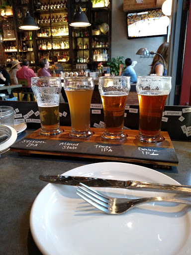 We went as a group of three without a reservation, and still had to wait 45 mins for a table, even though its not that busy. They used a lot of space in the restaurant for bench seats and counter seats, instead of tables or booths, so thats a little annoying. They have more tables outside, but we didnt feel like fighting the cold sitting under heaters. The staff were friendly and helpful, and the restaurant was impeccably clean. Parking in the area can be a challenge. The food was pretty good, if not a little overpriced, but the beer was the letdown. They do offer flights of beer, which is a pleasant addition most other "breweries" in the area fail to offer, but much like all the others in the area, their menu is heavy with IPAs. They are the easiest beer to brew and take the least time, so they are popular amongst upstart brewery/restaurants, but they dont taste good. No matter how you try to differentiate them (double, triple, amber, etc.) they all taste bitter. You know somethings off when you have to give the product a bitterness rating. Bitter beer is not good, full stop. Anyway, still worth giving the place a try for the food and the other beers.
