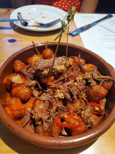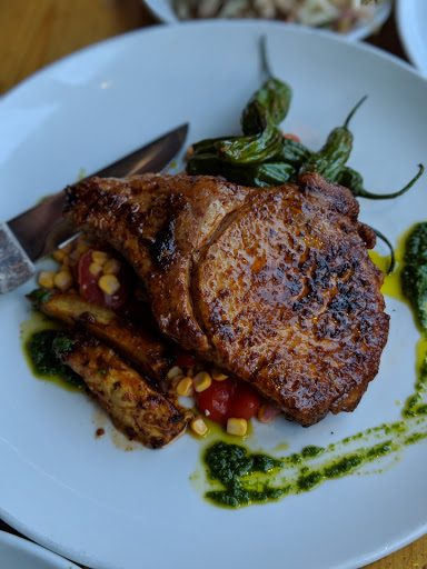 Ill start with the summation: its a nice lively addition to Fourth Street and a pretty good spot for drinks and nibbles. That was my first visit. There are numerous shareable small plates for that "drinks with friends" plan, but when I returned for dinner I was a bit disappointed. Probably should have just opted for the burger, which was what brought me back (hello IG) but instead I got distracted by the Wailea Poke starter (miss my Brick & Bottle tartare!). I should have stuck with that, but instead took our servers decent recommendation to get the East West salad (an "Asian Chop" if you will) and add the poke on top. Not a bad idea - and the tuba was delicious! - but the salad seemed like it had been dressed a few hours ago, and had sat waiting for an order... We ordered the Brave Potatoes to share, and they were as tasty as Id heard but Id get the Harissa aioli on the side next time as the potatoes didnt stay crispy very long. My friend ordered the Sticky Ribs and (on suggestion) added the Fire Cracker Green Beans. Beans were tasty! And spicy FYI. But the ribs were a miss with a bit of a strange gamey aftertaste that was funky. She left the majority of them behind. So she added the Mac & Cheese with "bacon dust" and that was quite good. Creamy, al dente, and savory. Plus 2 glasses of wine, this dinner of small plates was $100. Ugh. Not sure Id come back unless it was for the burger deal: $16 including salad or fries. Or maybe Ill meet friends for just drinks and nibbles again.