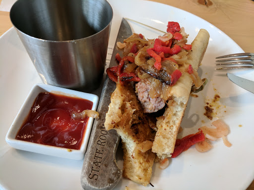 Every time I eat here I am impressed with the food. I give the state room 4 starts because of their service, once we were forgotten on the wait list and another time received generally bad service from the server. All in all a great place to eat, love the decor and outside seating!
