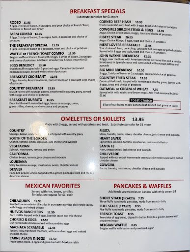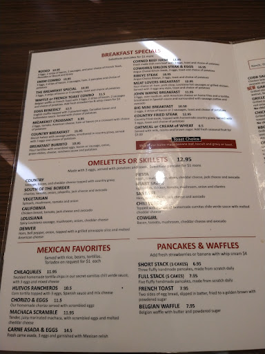 If you find yourself looking for something interesting for breakfast, then look no further than Cowgirls Cafe. They have really good tex-mex style food. I came here for breakfast and ended up getting the chile verde omelette. it was one of the best omelettes I have had in a long time. Service was excellent and price reasonable.