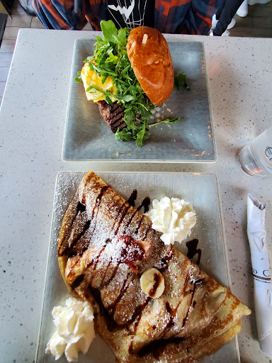 Not a bad option if youre looking for a place to eat after 9pm. Its a stand alone place facing the parking lot and Ross. I came here on a Saturday night after 9pm and the place was packed. I quickly snagged a table inside and pulled chairs from outside to fit the 4 of us. We had a teamwork thing going as some were in line to order for the group, while some of us guarded the table. Our group ended up sharing 2 crepes (French Revolution and Kiss Me), cannoli, and smoothie. Although the crepes have different names, essentially they tasted the same and have more or less the same ingredients. I liked how both arent overly sweet, generous in portion, and lots of fruits and nutella! The only difference between the 2 would be the types of fruits included (strawberries vs raspberries/blueberries). The cannoli lacked a "wow" factor, not sure how long its been in their display case. The smoothie wasnt bad, not too sweet either. Service was lacking, but I understand that it was busy and only 1-2 people bringing food to tables. I wiped down my own table and I brought in my own chairs so that my group can feel comfortable. Final verdict is that I cant say that this is my 1st choice, but Im willing to give them another try.