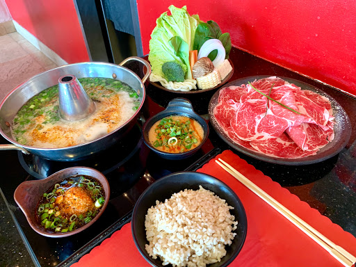 Came here in December 2014 for dinner with my friend because she had been craving shabu shabu for some time now. Arrived right when the doors opened for dinner (6 pm, I believe?), and thank god we did because in about 30 minutes or so, the whole place was packed. Both sides of the restaurant filled up quickly! We ordered normal portions of the ribeye and the prime steak. Delicious. The sauces really make the food taste much better because, to be honest, I never really ever liked "hot pot"-style food in my life. But this place does it right. We asked for our broth to be made spicy, and the server came with habanero chili oil. Made the soup VERY spicy with 2-4 drops. The server we had was awesome. Timely, and covered our every needs. Very attentive and friendly! Overall, this place was great. It was super filling even though the meat portion seemed "small" i.e. the broth and veggies will fill you up! Make sure you come here on off-hours because it will be packed! I definitely recommend this place!