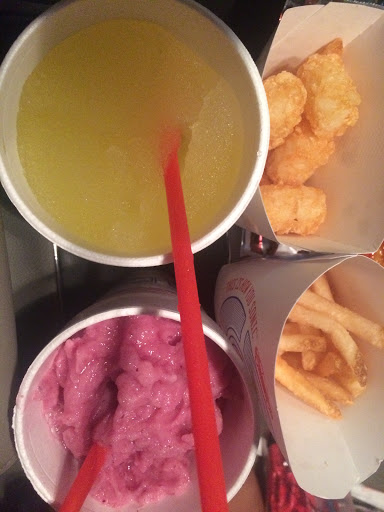 Good slushies and excellent milkshakes. Their burgers are alright, far from the best but good for a quick craving. Theyll serve you in your car, in the drive-thru or they have an outdoor area where you can walk up to get food. Prices are pretty good especially during their happy hours on drinks or milkshakes at night.