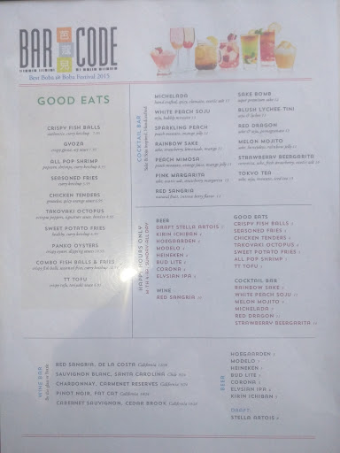 This is a pearl tea and cocktail bar. It has unique and fun tea or sake drinks. I got the strawberry envy drink which was a tea-espresso drink. It was tasty and I felt energized for sure! My husband got his usual milk tea and they had honey pearls, which he enjoyed. Since they are handcrafted drinks, it cost the same amount as a special Starbucks drinks so around $4-5. We didnt get any cocktails, but they were sounded good. We were there during happy hour 4-7pm, and we got the popcorn shrimp that came with curry ketchup, and that snack was so good! I am so glad we got it! I would definitely get it again! It was light and crispy without being oily. The curry ketchup also sold it for us. The seating area at Bar code was also quite cushy and comfortable. It was a nice place to have a snack and a good drink.