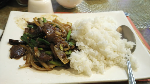 Well i got the spicy broccoli good but different due to the Korean picked veggies needs more heat, and the B B Q Porkfried fice its no.2 out of 100s i have tried no.1 is in torrance. That rice is all that you will want you taste every ingredient the egg is browned a little pork moist not like most places. The hot sour soup to full to analyze it.... happy i am