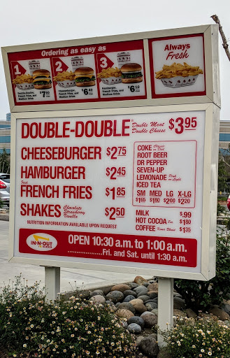 The food is tasty and a California foodie favorite. You can request edits to your burger to set it apart. For instance, instead of just a "burger" you can order "well-done burger with toasted buns and peppers animal style". Careful when using the drive-thru! You can easily get stuck, especially if theyre behind on an item. Its better to go in and wait for 20 minutes than to be stuck chugging along wasting gas for 15 minutes.