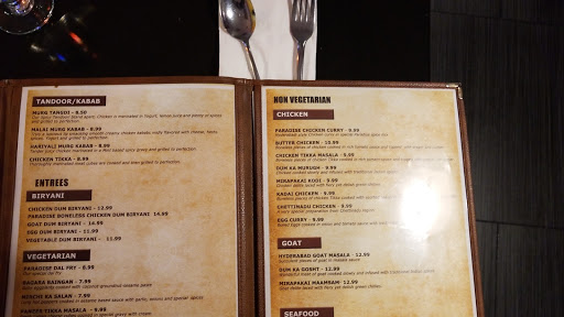 Summary: Goat Biryani taste was good but not excellent and is one of the better one in town. It is not the same as Persis Paradise in Hyd, quantity is low for $14, pricey, more goat pieces should be included (dont be greedy please), sauteed onions in rice, why call it raitha when it is butter milk with onions?, more limey would be good. Overall, I felt like making some at home and give them a sample like "Tabu" does in "Cheeni Kum" simply to make a statement that there is room to bring it closer to home. I drove all the way from Fremont to try it out, but would settle for Biryani Bowl or Pakwan in the future. For people living in Santa Clara or nearby areas, this can be a good place to get closer to home. People got to know that the original Paradise in Hyd is "Persis Paradise" and this place has no affiliation to it. I know the owners in Hyd and they confirmed it. I was very disappointed with Raitha. Really, it was butter-milk with a bunch of cut onions - try Biryani Bowl for real thing. Also, the goat pieces were sprinkled in. Typical Hyd Biryani has sauteed brown onions in the rice and I did not see any. Other Biryani places dress it with raw cut onions, which is also not right. With what authority I say this: My friends know the answer to this.. __._,_.___