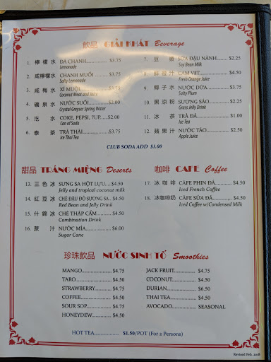 Just been there last week. We ordered Beef Pho. The meat was old and smelt bad. Started off with horrible food. The Basil leaves were spoilt. The waiters were rude. The cashiers behavior was more than bad. Will never go there again. There are plenty of good Pho restaurants out there.
