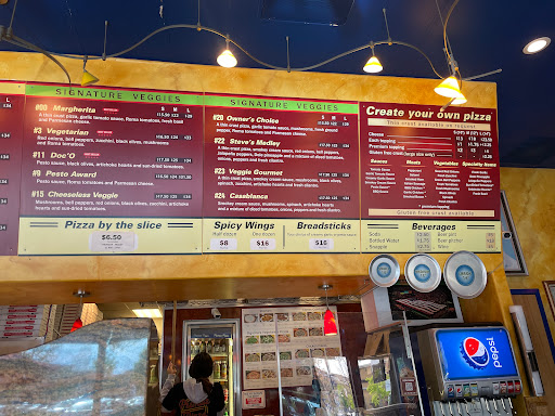 Great place to pick up a quick slice of pizza at a great price. Lots of options for omnivores and vegetarians alike