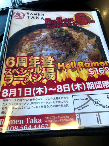 It was a pretty large restaurant with bar seatings which is convenient for individual customers. I had Taka ramen which had a reasonably light broth with good flavors, al dente thin noodles, two slices of fatty pork and a soft egg. I liked it. Also ordered the fried chicken which was pretty good. The fried rice was just so so. The only thing is that they do not take to go orders which I found interesting. Business seemed good on a Thursday lunch around 1pm. Parking was limited though. With Starbucks next door, parking might be a problem during certain times, such as weekends.