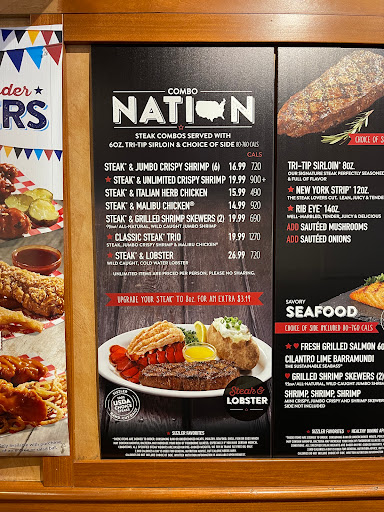 The steak and all u can eat shrimp was charded and not tasty.the only good thing was the saladbar and clam chowder.wouldnt eat again.