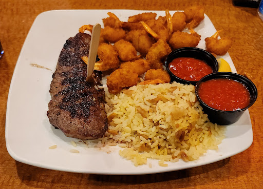 This has to be by far, the most terrible place to eat of any establishment I have ever been to. Poor service, very dirty and the food quality was horrible! 2 people, $42.00, small steak overcooked, lobster overcooked (microwaved)to the point it had to be cut with a knife...my friends steak was a weird shape and overcooked....sent back...the next steak was raw and we couldnt tell what part of the cow this thing came from!!! I took the liberty to attach a picture to this post....FYI..he didnt chew or try to cut it...in fact Im surprised he tried to eat it...waiter took my tea to refill when he delivered the second steak....he never returned...over 30 minutes! Anyway, 2 thumbs down, waste of money, Im surprised were still alive after eating that garbage!